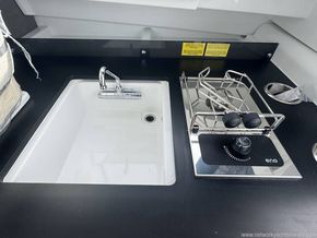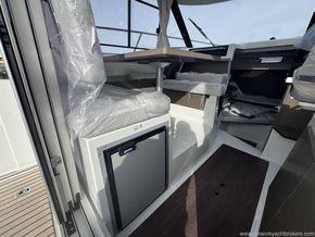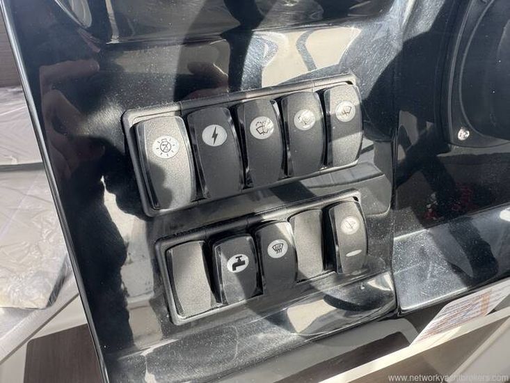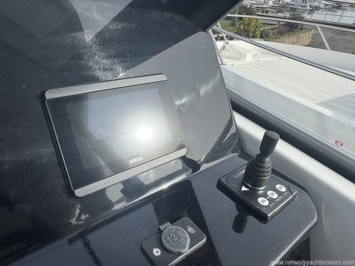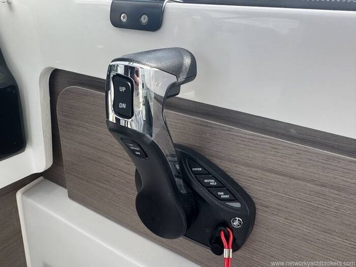 Powered by a Yamaha 200HP drive-by-wire outboard, she delivers smooth, responsive handling and an efficient, confident ride. A bow thruster and trim tabs make close-quarters handling and balancing underway simple and precise, while the inclusion of Garmin electronics ensures confident navigation wherever she goes.